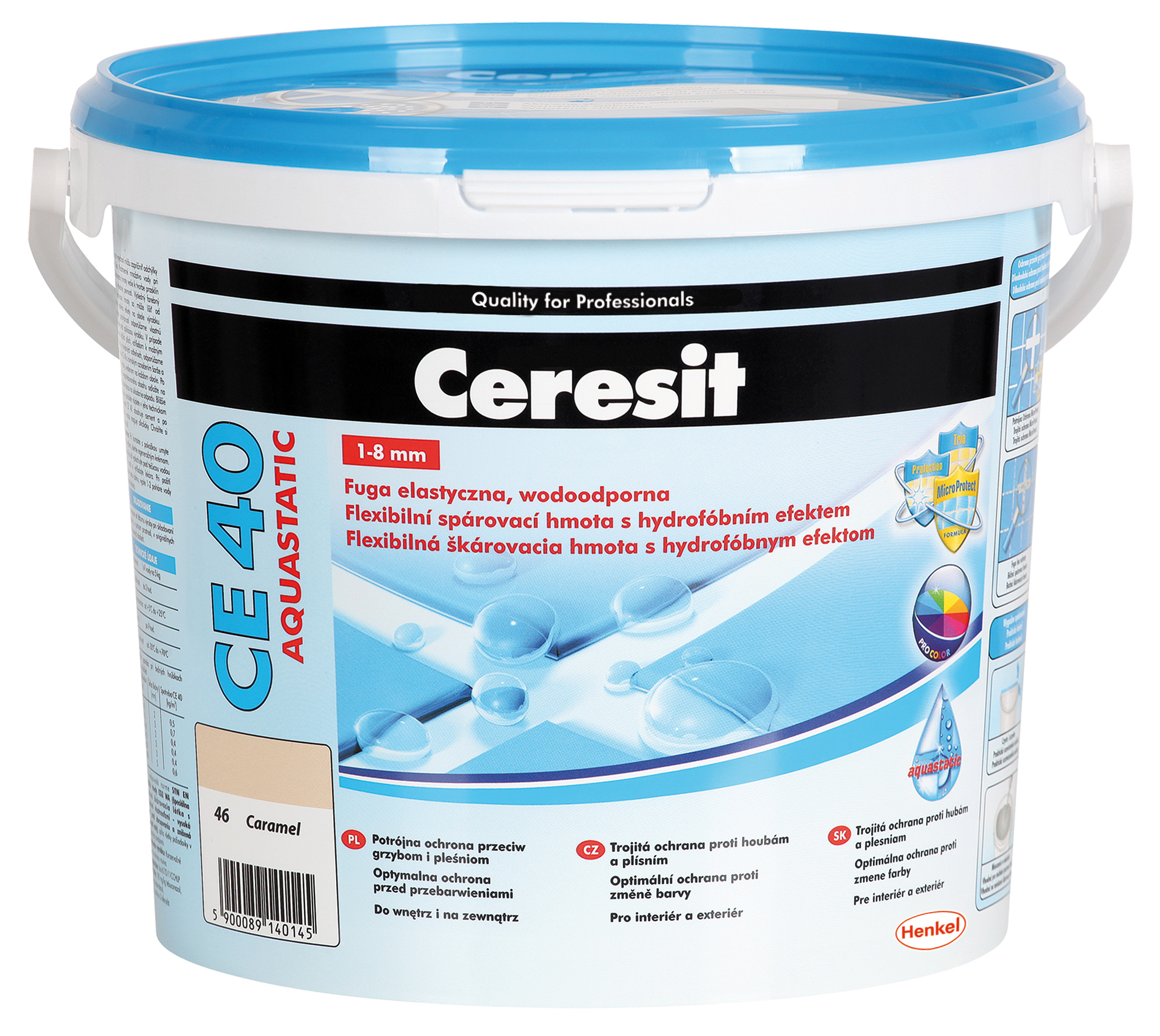 CERESIT fuga elastyczna do płytek CE 40 - 5 kg, 1-8 mm - zaprawa Ceresit CE 40 służy do spoinowania płytek gresowych, innych typów płytek ceramicznych, szklanych oraz kamiennych (również marmurów), zarówno na powierzchniach pionowych i poziomych. Potrójna Ochrona MicroProtect – formuła zawiera 3 specjalnie dobrane substancje czynne, które zapewniają długą i skuteczną ochronę przeciw grzybom i pleśniom. Formuła chroni nie tylko samą spoinę, lecz również przyległe do niej powierzchnie płytek (strefa inhibicji), zapewniając estetyczny wygląd okładziny ceramicznej. Efekt Aquastatic – powierzchniowe uszczelnienie spoiny (hydrofobizacja) powoduje, że krople wody utrzymują się w formie perełek na powierzchni fugi, co wydłuża znacząco działanie pleśniobójcze oraz chroni fugę przed zabrudzeniami. Zalety te umożliwiają eksploatacje spoiny w miejscach szczególnie narażonych na okresowe działanie wody np. łazienki, prysznice, kuchnie. Może być stosowana wewnątrz i na zewnątrz budynków. Szczególnie polecana, gdy płytki mocowane są na podłożach odkształcalnych: ogrzewane podłogi, płyty wiórowe i gipsowo-kartonowe. Wodoszczelność i odporność na oddziaływanie chemikaliów zapewnia stosowanie fugi Ceresit: CE 79. Dylatacje między płytkami, spoiny w narożach ścian, w połączeniach ścian z posadzką i przy urządzeniach sanitarnych należy wypełnić silikonem Ceresit CS 25 MicroProtect, a w przypadku spoinowania marmurów CS 29. W celu dodatkowego zabezpieczenia spoin i okładzin ceramicznych przed zabrudzeniami poprzez hydrofobizację, należy stosować silikonowy impregnat Ceresit CT 10.